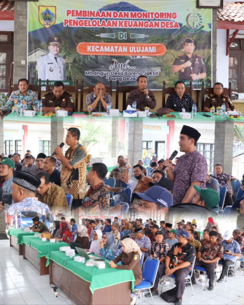 Bahwa pada hari Kamis, tanggal 23 November 2023, sekitar Pukul 10.35 WIB s/d Pukul 13.15 WIB Bertempat di Kantor Kecamatan Ulujami Kabupaten Pemalang, telah dilaksanakan kegiatan Mbangun Desa Bareng Jaksa (Bang DeJa) dengan Tema Pembinaan dan Monitoring Pengelolaan Keuangan Desa di Kecamatan Ulujami, yang dihadiri kurang lebih 87 orang.