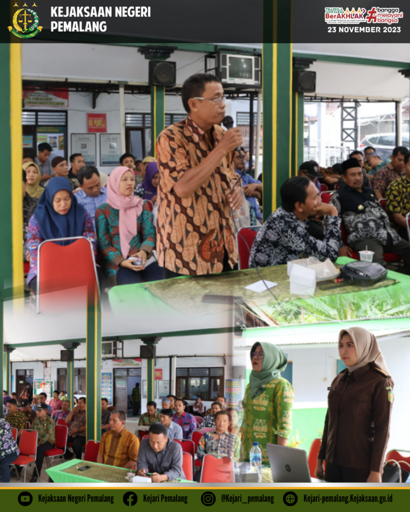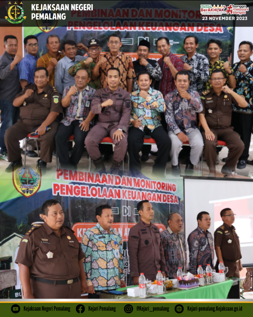Bahwa pada hari Kamis, tanggal 23 November 2023, sekitar Pukul 14.15 WIB s/d Pukul 16.00 WIB Bertempat di Kantor Kecamatan Ampelgading Kabupaten Pemalang, telah dilaksanakan kegiatan Mbangun Desa Bareng Jaksa (Bang DeJa) dengan Tema Pembinaan dan Monitoring Pengelolaan Keuangan Desa di Kecamatan Ampelgading, yang dihadiri kurang lebih 73 orang.