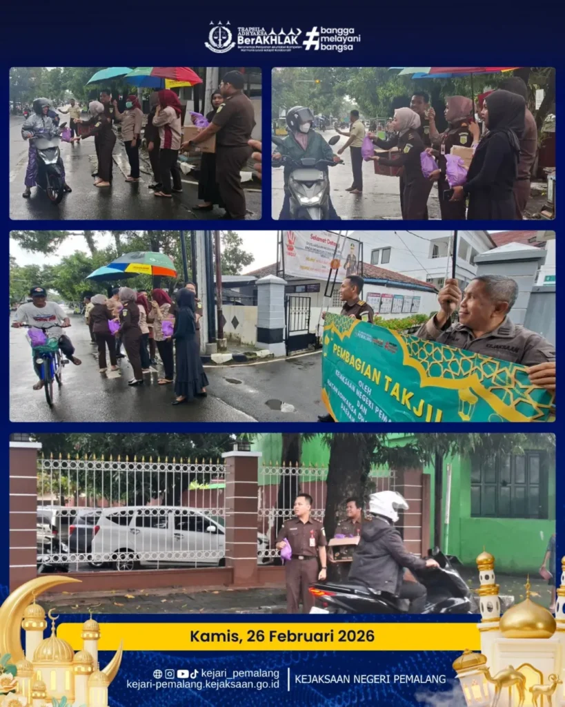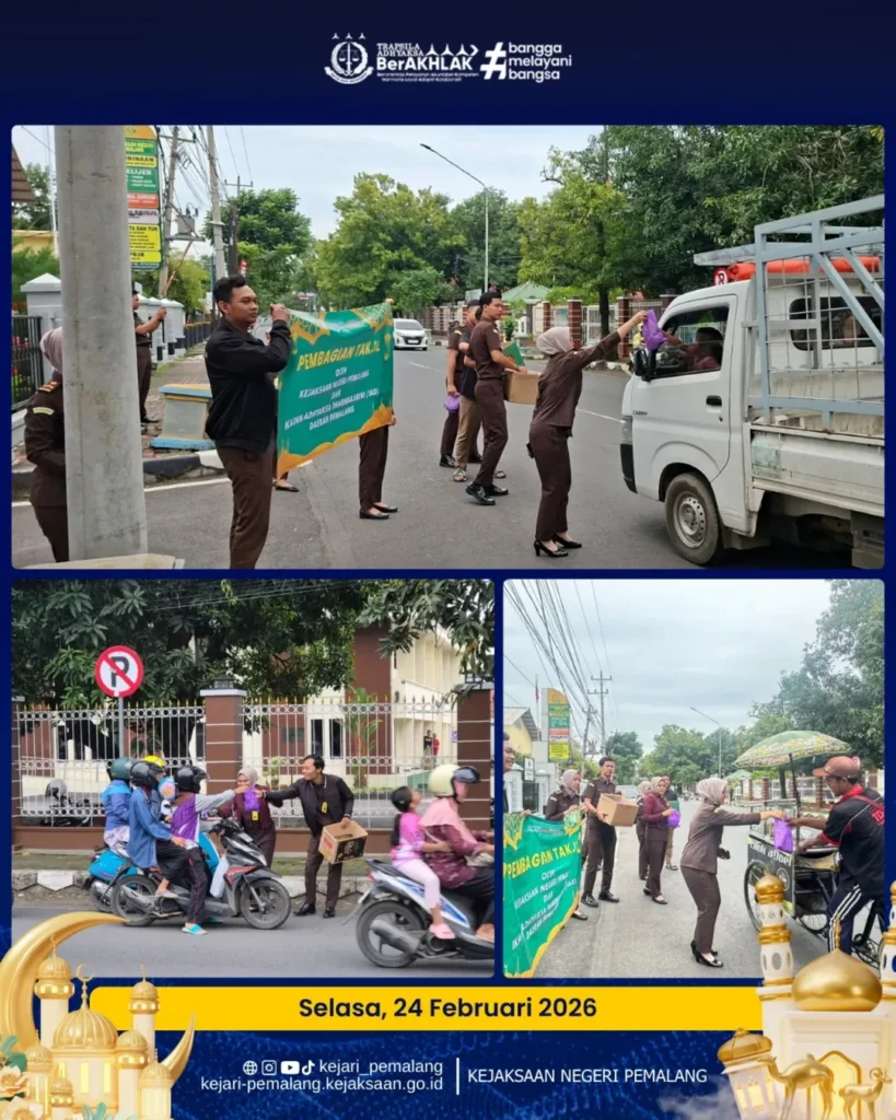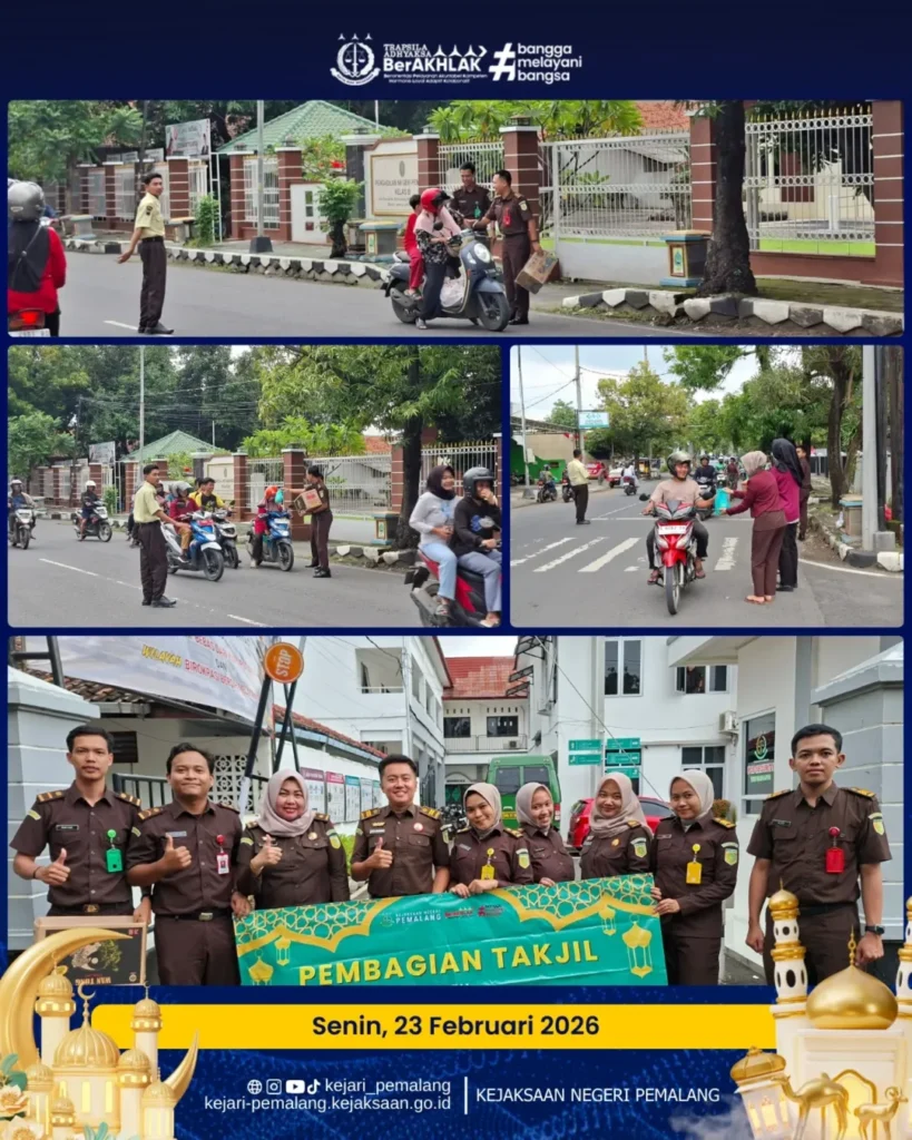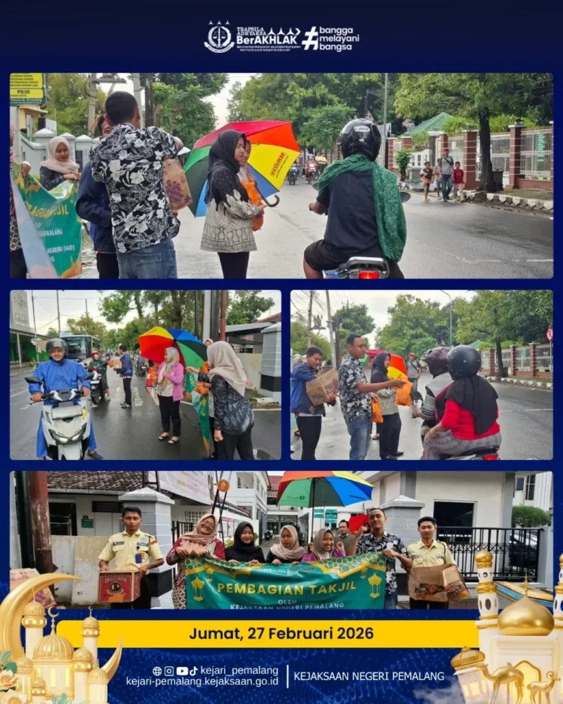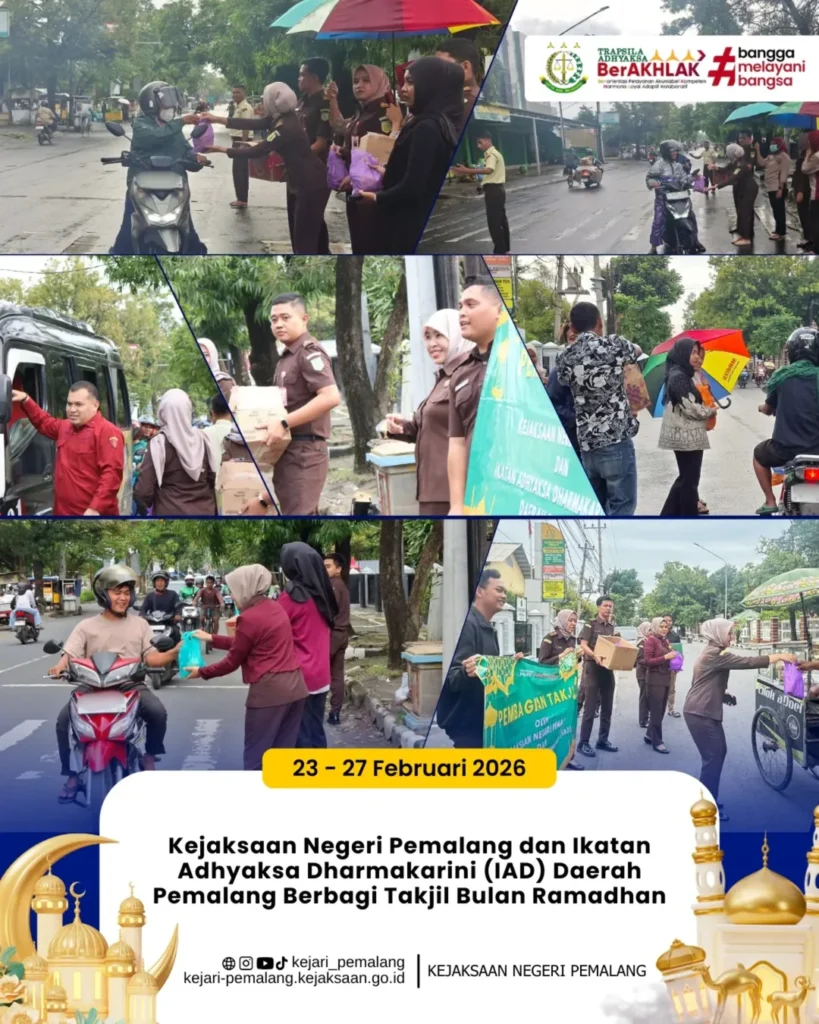 Kejaksaan Negeri Pemalang bersama Ikatan Adhyaksa Dharmakarini (IAD) Daerah Pemalang melaksanakan kegiatan berbagi takjil pada 23–27 Februari 2026 dalam rangka Bulan Suci Ramadhan 1447 H / 2026 M.