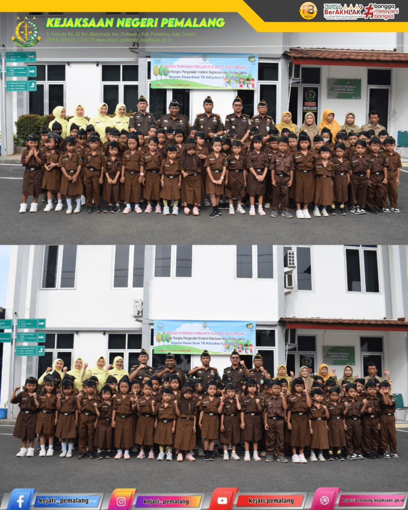 Pada Hari Senin, 27 November 2023, bertempat di Halaman Kantor Kejaksaan Negeri Pemalang, Melaksanakan kegiatan apel kerja senin pagi. selain diikuti Para Kasi/Kasubag, Pegawai, PPNPN juga diikuti kepala sekolah, ibu guru serta siswa/i TK Adhyaksa III Pemalang serta perwakilan dari ibu-ibu IAD daerah Pemalang.
