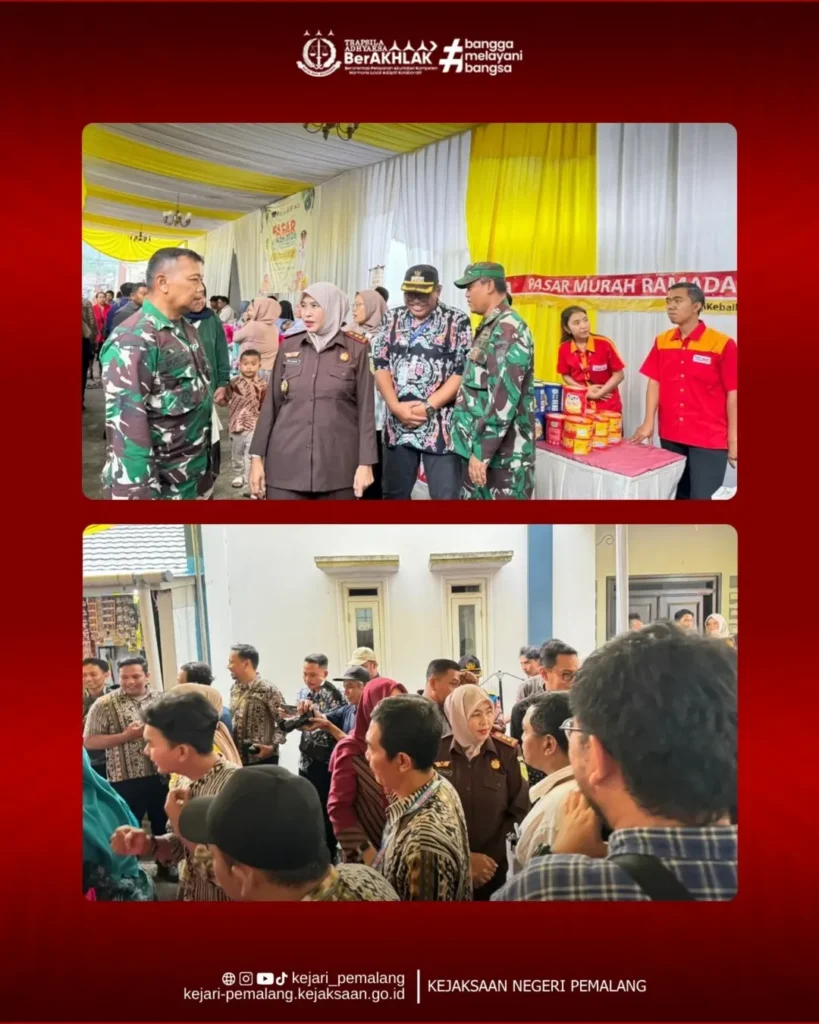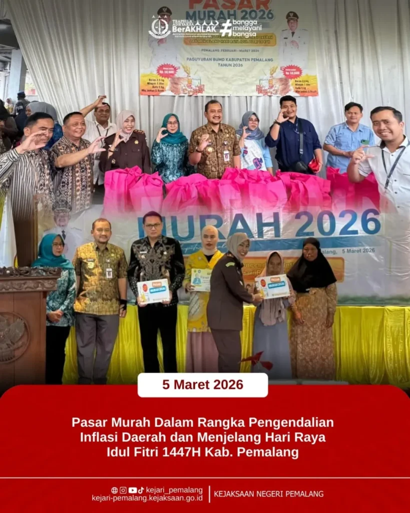 Kamis, 5 Maret 2026, Kepala Kejaksaan Negeri Pemalang Ibu Rina Idawani, S.H., CN., M.M. turut hadir pada kegiatan Pasar Murah dalam rangka Pengendalian Inflasi Daerah dan Menjelang Hari Raya Idul Fitri 1447 H yang dilaksanakan di Balai Desa Bulakan, Kecamatan Belik, Kabupaten Pemalang.