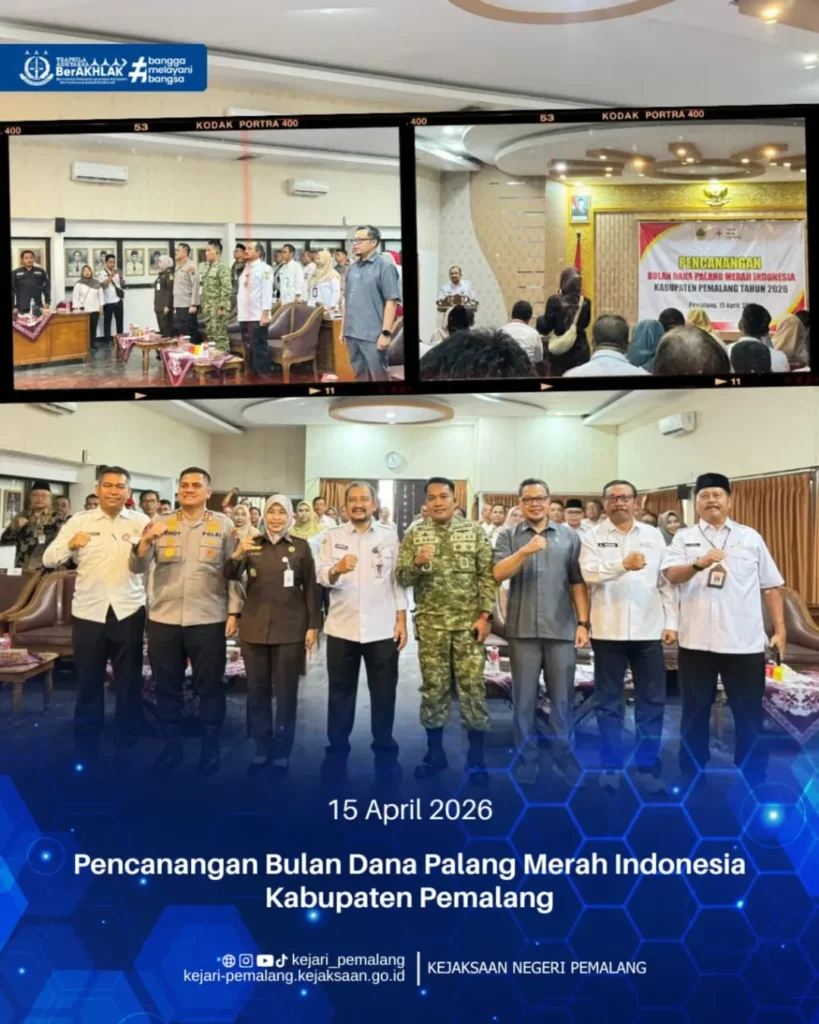 Kepala Kejaksaan Negeri Pemalang Ibu Rina Idawani, S.H., CN., M.M. turut hadir dalam kegiatan Pencanangan Bulan Dana Palang Merah Indonesia Kabupaten Pemalang Tahun 2026 yang bertempat di Gedung Sasana Bhakti Praja Kabupaten Pemalang pada Rabu, 15 April 2026.